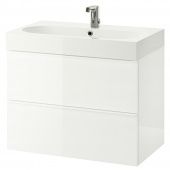 IKEA s79414714 GODMORGON ГОДМОРГОН / BRÅVIKEN БРОВИКЕН Шкаф для раковины с 2 ящ - глянцевый белый/БРОГРУНД смеситель 80x48x68 см