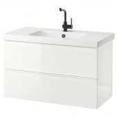 IKEA S29424428 ГОДМОРГОН / ОДЕНСВИК Шкаф для раковины с 2 ящ, глянцевый белый, ЛУНДШЭР смеситель, 103x49x64 см