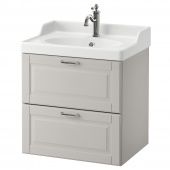 IKEA S59293355 ГОДМОРГОН / РЭТТВИКЕН Шкаф для раковины с 2 ящ, Кашён светло-серый, ХАМНШЕР смеситель, 62x49x68 см