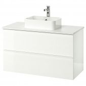 Отличное соотношение цены и качества и гарантия на срок не менее 10 лет ежедневного использования. Ознакомьтесь с условиями в гарантийной брошюре.Благодаря простому и лаконичному дизайну легко комбинировать с другой мебелью.Ванная всегда выглядит свежо благодаря глянцевому покрытию, которое отражает свет и придает ванной сияние.Ящики защищены от повреждения водой благодаря продуманной технологии производства. Пленка наносится на поверхность ДСП таким образом, что не остается незащищенных кромок, в которые может проникнуть вода.Мыть пол теперь как никогда легко, ведь шкаф крепится к стене и ножки не будут мешать уборке.Ящики с плавным ходом и стопором полностью открываются, не выпадая из каркаса и обеспечивая отличный обзор содержимого.Специальный механизм обеспечивает плавное и бесшумное закрывание ящика, так что нет никакой опасности прищемить пальцы.В глубоком нижнем ящике удобно хранить полотенца и фен, а в верхнем ящике достаточно места для бутылочек с шампунем и гелем для душа и разных мелочей.Пространство ящиков можно использовать максимально эффективно, благодаря продуманному дизайну сифонЯщики легко собрать благодаря простой конструкции.Каждый раз открывая кран, вы экономите воду и энергию, так как аэратор предотвращает излишний расход воды.Ножки ГОДМОРГОН продаются отдельно.Обратите, пожалуйста, внимание, что для установки раковины в столешницу вам потребуются силиконовый уплотнитель и лобзик (продаются отдельно).Ручки прилагаются.Выпуск и сифон прилагаются.Смеситель и выпуск прилагаются.Раковина устойчива к воздействию большинства химикатов, за исключением сильных кислот и сильных щелочей.Эту мебель необходимо крепить к стене с помощью прилагаемого стенного крепежа.Если вы сомневаетесь в прочности стен в ванной, мы рекомендуем использовать ножки.Используйте прилагающийся шаблон для установки раковины на столешницу.Мойку в столешницу следует устанавливать через 2 часа после нанесения силиконового уплотнителя на столешницу, чтобы он успел затвердеть.Для сборки этой мебели требуются два человека.Убедитесь, что материалы, из которых сделаны стены ванной комнаты, выдержат вес мебели. Если у вас возникли сомнения по поводу установки, обратитесь к специалисту. Для разных стен требуются различные шурупы, дюбели, саморезы и т. п. (не прилагаются).Материал, из которого изготовлено данное изделие, пригоден для переработки. Ознакомьтесь с правилами переработки отходов в вашей стране и узнайте, существуют ли перерабатывающие предприятия в вашем регионе.Дизайнер:H Preutz/N Karlsson/IKEA of SwedenМатериалы и уход