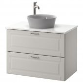 IKEA S79308493 ГОДМОРГОН/ТОЛКЕН / КАТТЕВИК Шкаф со столешницей 40см раковина, Кашён светло-серый, под мрамор ВОКСНАН смеситель, 82x49x75 см