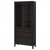 IKEA 80373430 HEMNES ХЕМНЭС Шкаф-витрина с 3 ящиками - черно-коричневый 90x197 см