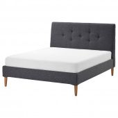 Мягкое наклонное изголовье кровати ИДАНЭС обеспечит оптимальную опору для вашей спины во время неспешной утренней чашечки кофе или вечернего чтения любимой книги.Кнопки создают декоративный рельеф на поверхности изголовья.Мягкая и приятная на ощупь обивка делает спальню еще уютнее.Прочные и устойчивые ножки из массива дерева дополняют классический облик.Создайте гармоничный интерьер спальни, дополнив каркас кровати другой мебелью серии ИДАНЭС.Легко собрать благодаря упрощенному процессу сборки с использованием небольшого количества крепежных элементов.Прочная темно-серая ткань обивки ГУННАРЕД придает интерьеру спальни классический облик.Под кроватью можно разместить ящики — отличное решение для хранения подушек и одеял.Пространство под кроватью можно без труда почистить пылесосом.Регулируемые боковины кровати позволяют использовать матрасы разной толщины.Центральная перекладина и реечное дно прилагаются.Матрас и постельное белье продаются отдельно.Задняя сторона изголовья отделана нетканым материалом черного цвета.Износостойкость чехла подтверждена 50000 циклов воздействия истиранием. Способность выдержать 15000 циклов и более считается нормой для мебели для бытового использования. Показатель более 30000 циклов означает высокую устойчивость материала к истиранию.Чехол имеет уровень светостойкости (способность противостоять выцветанию) 5–6 по шкале от 1 до 8. В соответствии с отраслевыми стандартами материал с уровнем светостойкости 4 или выше подходит для домашнего использования.Дизайнер:Francis CayouetteМатериалы и уход