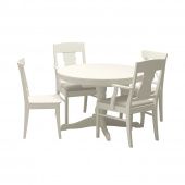 IKEA s39254166 INGATORP ИНГАТОРП / INGOLF ИНГОЛЬФ Стол и 4 стула - белый/Нордвалла бежевый 110/155 см