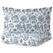 IKEA 10493271 JUNIMAGNOLIA ЮНИМАГНОЛИЯ Пододеяльник и 2 наволочки - белый/темно-синий 200x200/50x70 см