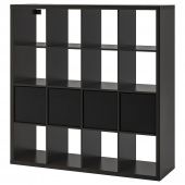 IKEA S89228108 КАЛЛАКС Стеллаж с 4 вставками, черно-коричневый, черный, 147x147 см