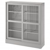 IKEA S99275118 ХАВСТА Шкаф-витрина с цоколем, серый, прозрачное стекло, 121x37x134 см