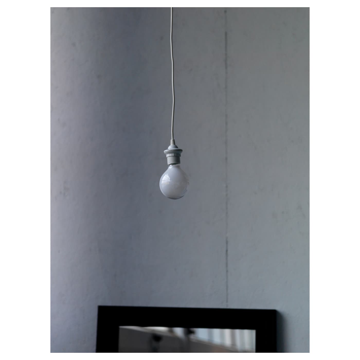 Лампочка продается отдельно. Мы рекомендуем шарообразный молочный светодиод E27.Абажур продается отдельно.Для обычного абажура или светильника используйте матовую лампочку. Это обеспечит равномерный рассеянный свет.Может требоваться специальная обработка отходов. За более подробной информацией обращайтесь в местные органы власти.Постоянное подключение к электросети.Можно подвесить на потолочный крючок.В целях безопасности подвешивайте в недоступном для детей месте.Дизайнер:IKEA of SwedenМатериалы и уход