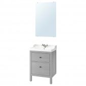 IKEA S59389975 ХЕМНЭС / РЭТТВИКЕН Комплект мебели для ванной,4 предм., серый, РУНШЕР смеситель, 62 см