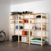 При необходимости комбинацию можно увеличить, добавив полки и секции.Необработанный массив дерева – прочный натуральный материал, который можно покрыть маслом или воском для повышения износостойкости.Придайте мебели индивидуальную выразительность, обработав ее морилкой или покрасив в свой любимый цвет.Мебель необходимо крепить к стене.Для различного типа стен требуются разные виды креплений. Выберите подходящие для ваших стен шурупы, дюбели, саморезы и т. п. (не прилагаются).Для устойчивости дополните каждую вторую секцию крестовиной.Пригодно для переработки или энергетической утилизации, если это предусмотрено в вашем регионе.Дизайнер:IKEA of SwedenМатериалы и уход