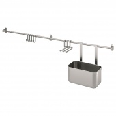 IKEA S09308222 КУНГСФОРС Рейлинги с крючками и контейнером, нержавеющ сталь, 112 см