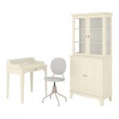 Письменный стол Основные части/ Крышка/ Нижняя часть ящика/ Фронтальная часть ящика:ДВП, Полиэфирная краскаСтолешница:ДВП, Полиэфирная краска, Полиэфирная краскаЗадняя часть ящика/ Боковины ящика:Массив сосныРабочий стул Ткань:100% полиэстер (мин. 90 % переработанного материала)Подбивка:Полиэстерная ватаВнутренняя рама:ПолипропиленКаркас спинки/ Механизм/ Газ-патрон/ Ножка:Сталь, Эпоксидное/полиэстерное порошковое покрытиеЗастежка-липучка:100% нейлонПодкладка:100% полипропиленНаполнитель:Пенополиуретан 35кг/куб.мКаркас сиденья:Многослойный клееный шпонОпора:Полиамидная пластмассаШкаф со стеклянными дверцами Декоративная рейка/ Верхняя панель/ Задняя панель/ Дверь/ Задняя обвязка/ Нижняя панель/ Основа ножки:ДВП, Полиэфирная краскаБоковая панель/ Съемная полка:ДСП, Полиэфирная краска, Пластиковая окантовкаСтеклянная дверь:ДВП, Полиэфирная краска, Закаленное стеклоИнформация об упаковке
