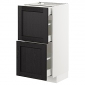 IKEA S09258062 МЕТОД / МАКСИМЕРА Напольный шкаф/2фасада/3ящика, белый, Лерхюттан черная морилка, 40x37 см