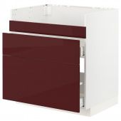IKEA s39327554 METOD МЕТОД / MAXIMERA МАКСИМЕРА Напол шк д/мойки ХАВСЕН/3фасада/2ящ - белый Калларп/глянцевый темный красно-коричневый 80x60 см