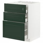 IKEA s89312079 METOD МЕТОД / MAXIMERA МАКСИМЕРА Напольн шкаф/3фронт пнл/3ящика - белый/Будбин темно-зеленый 60x60 см