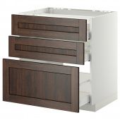 IKEA s79236359 METOD МЕТОД / MAXIMERA МАКСИМЕРА Напольн шкаф/3фронт пнл/3ящика - белый/Эдсерум коричневый 80x60 см