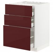 IKEA s39327144 METOD МЕТОД / MAXIMERA МАКСИМЕРА Напольн шкаф/3фронт пнл/3ящика - белый Калларп/глянцевый темный красно-коричневый 60x60 см