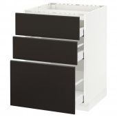 IKEA s99219858 METOD МЕТОД / MAXIMERA МАКСИМЕРА Напольн шкаф/3фронт пнл/3ящика - белый/Кунгсбакка антрацит 60x60 см