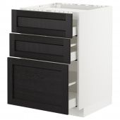 IKEA s59257965 METOD МЕТОД / MAXIMERA МАКСИМЕРА Напольн шкаф/3фронт пнл/3ящика - белый/Лерхюттан черная морилка 60x60 см