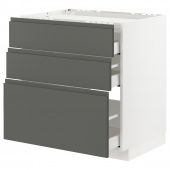 IKEA s39305477 METOD МЕТОД / MAXIMERA МАКСИМЕРА Напольн шкаф/3фронт пнл/3ящика - белый/Воксторп темно-серый 80x60 см
