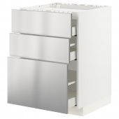 IKEA s49329883 METOD МЕТОД / MAXIMERA МАКСИМЕРА Напольн шкаф/3фронт пнл/3ящика - белый/Ворста нержавеющ сталь 60x60 см