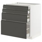 IKEA s49331697 METOD МЕТОД / MAXIMERA МАКСИМЕРА Напольн шкаф 4 фронт панели/4 ящика - белый/Воксторп темно-серый 80x60 см