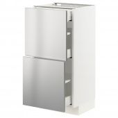 IKEA s99329965 METOD МЕТОД / MAXIMERA МАКСИМЕРА Напольный шкаф/2фасада/3ящика - белый/Ворста нержавеющ сталь 40x37 см