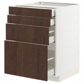 IKEA s19404275 METOD МЕТОД / MAXIMERA МАКСИМЕРА Напольный шкаф 4 фасада/4 ящика - белый/Синарп коричневый 60x60 см