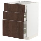 IKEA s89404272 METOD МЕТОД / MAXIMERA МАКСИМЕРА Напольный шкаф с 3 ящиками - белый/Синарп коричневый 60x60 см