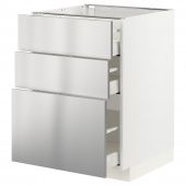 IKEA s59329905 METOD МЕТОД / MAXIMERA МАКСИМЕРА Напольный шкаф с 3 ящиками - белый/Ворста нержавеющ сталь 60x60 см