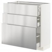 IKEA s59329986 METOD МЕТОД / MAXIMERA МАКСИМЕРА Напольный шкаф с 3 ящиками - белый/Ворста нержавеющ сталь 80x37 см