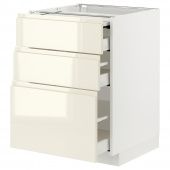 IKEA s69433529 METOD МЕТОД / MAXIMERA МАКСИМЕРА Напольный шкаф с выдвиж панелью/3ящ - белый/Воксторп глянцевый светло-бежевый 60x60 см