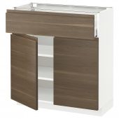 IKEA s69238820 METOD МЕТОД / MAXIMERA МАКСИМЕРА Напольный шкаф+ящик/2дверцы - белый/Воксторп грецкий орех 80x37 см