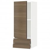 IKEA s49445038 METOD МЕТОД / MAXIMERA МАКСИМЕРА Навесной шкаф с дверцей/2 ящика - белый/Воксторп под грецкий орех 40x100 см