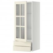 IKEA s49232046 METOD МЕТОД / MAXIMERA МАКСИМЕРА Навесной шкаф/стекл дверца/2 ящика - белый/Будбин белый с оттенком 40x100 см