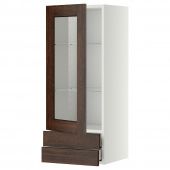 IKEA s49235573 METOD МЕТОД / MAXIMERA МАКСИМЕРА Навесной шкаф/стекл дверца/2 ящика - белый/Эдсерум коричневый 40x100 см