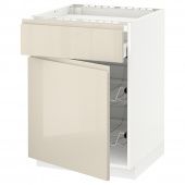 IKEA s79445391 METOD МЕТОД / MAXIMERA МАКСИМЕРА Шкаф д/варочной панели/ящик/2пр крз - белый/Воксторп глянцевый светло-бежевый 60x60 см