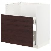 IKEA s89334458 METOD МЕТОД / MAXIMERA МАКСИМЕРА Шкаф п/мойку БРЕДШЁН/2фасада/2ящика - белый Аскерсунд/темно-коричневый под ясень 80x60 см