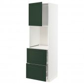 IKEA s39447368 METOD МЕТОД / MAXIMERA МАКСИМЕРА Выс шкаф д/духовки+дв/2фрнт/2выс ящ - белый/Будбин темно-зеленый 60x60x200 см
