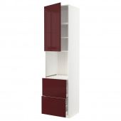 IKEA s29444916 METOD МЕТОД / MAXIMERA МАКСИМЕРА Высокий шкаф д/духовки+дверь/2ящика - белый Калларп/глянцевый темный красно-коричневый 60x60x240 см