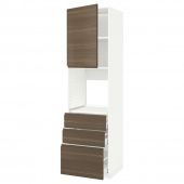IKEA s19446727 METOD МЕТОД / MAXIMERA МАКСИМЕРА Высокий шкаф д/духовки/дверь/3ящика - белый/Воксторп под грецкий орех 60x60x220 см
