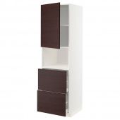 IKEA s09335287 METOD МЕТОД / MAXIMERA МАКСИМЕРА Высокий шкаф д/СВЧ/дверца/2ящика - белый Аскерсунд/темно-коричневый под ясень 60x60x200 см