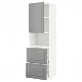 IKEA s49233164 METOD МЕТОД / MAXIMERA МАКСИМЕРА Высокий шкаф д/СВЧ/дверца/2ящика - белый/Будбин серый 60x60x200 см