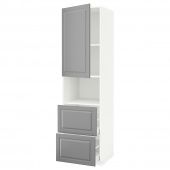 IKEA s99233166 METOD МЕТОД / MAXIMERA МАКСИМЕРА Высокий шкаф д/СВЧ/дверца/2ящика - белый/Будбин серый 60x60x220 см