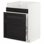 IKEA s49280396 METOD МЕТОД Напол шк д/мойки ХАВСЕН/3фасада/2ящ - белый Максимера/Лерхюттан черная морилка 60x60 см