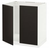 IKEA s39445147 METOD МЕТОД Напольный шкаф для мойки+2 двери - белый/Кунгсбакка антрацит 80x60 см