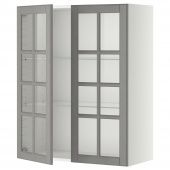 IKEA s09227768 METOD МЕТОД Навесной шкаф с полками/2 стекл дв - белый/Будбин серый 80x100 см