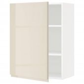 IKEA s19446671 METOD МЕТОД Навесной шкаф с полками - белый/Воксторп глянцевый светло-бежевый 60x80 см