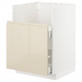 IKEA s19299000 METOD МЕТОД Шкаф п/мойку БРЕДШЁН/1фасад/2ящика - белый/Воксторп глянцевый светло-бежевый 60x60 см