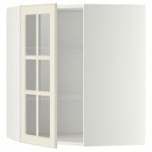 IKEA s59393618 METOD МЕТОД Углов навесн шкаф с полками/сткл дв - белый/Будбин белый с оттенком 68x80 см